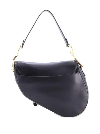 Pre-owned Saddle Handbag Leather Medium Shoulder Bag In Black