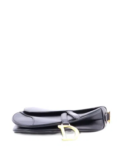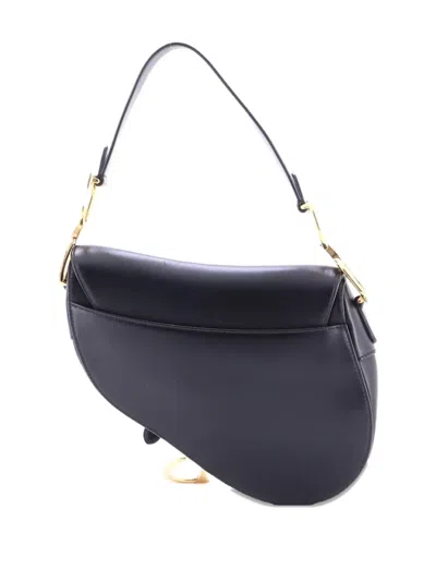 Pre-owned Saddle Handbag Leather Medium Shoulder Bag In Black