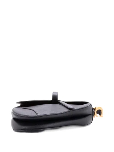 Pre-owned Saddle Handbag Leather Medium Shoulder Bag In Black
