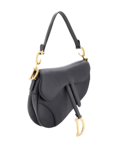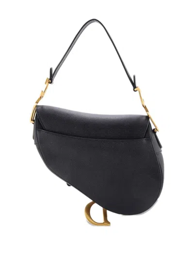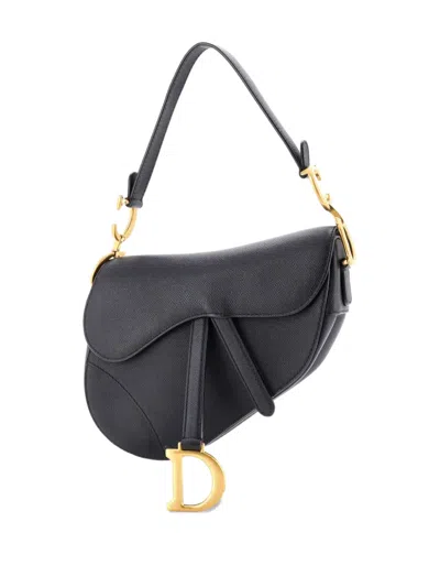 Pre-owned Saddle Handbag Leather Medium Shoulder Bag In Black