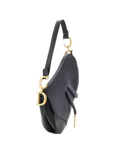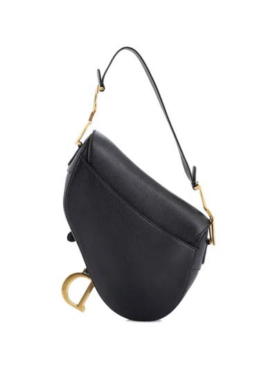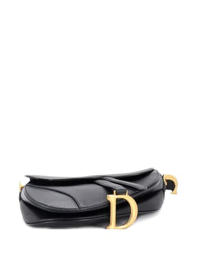 Pre-owned Saddle Handbag Leather Medium Shoulder Bag In Black