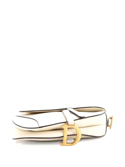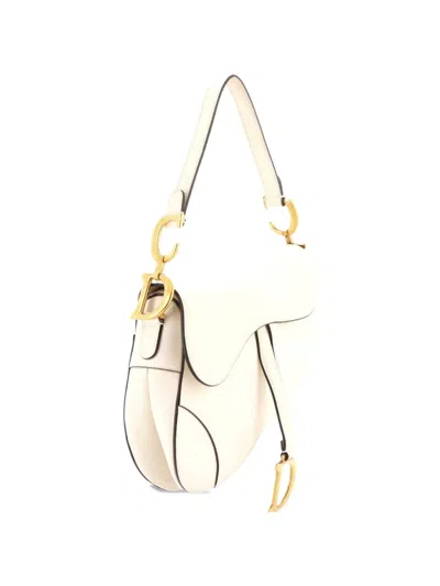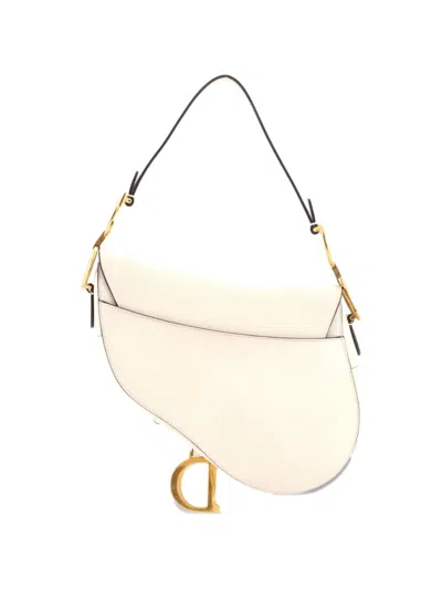 Pre-owned Saddle Handbag Leather Medium Shoulder Bag In Neutral