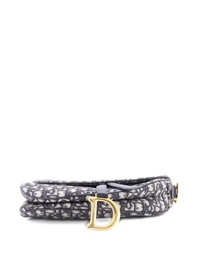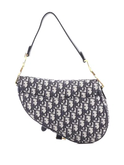 Pre-owned Saddle Handbag Oblique Canvas Medium Shoulder Bag In Blue