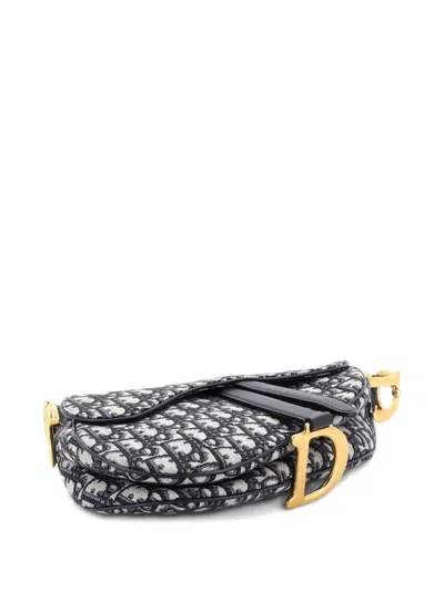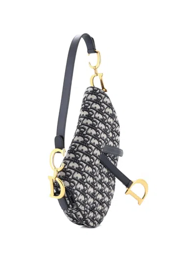 Pre-owned Saddle Handbag Oblique Canvas Medium Shoulder Bag In Blue