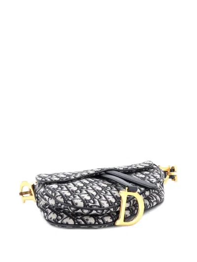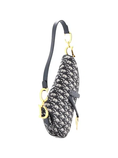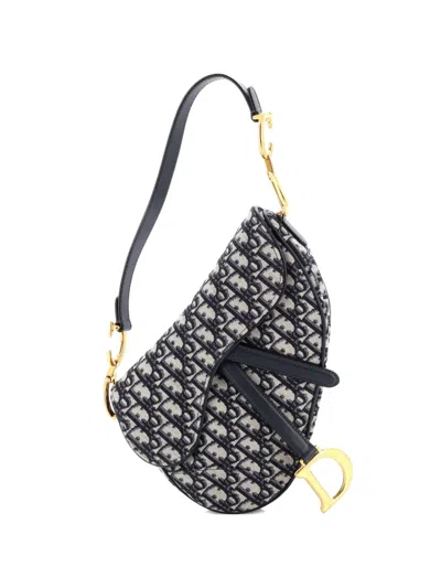 Pre-owned Saddle Handbag Oblique Canvas Medium Shoulder Bag In Blue