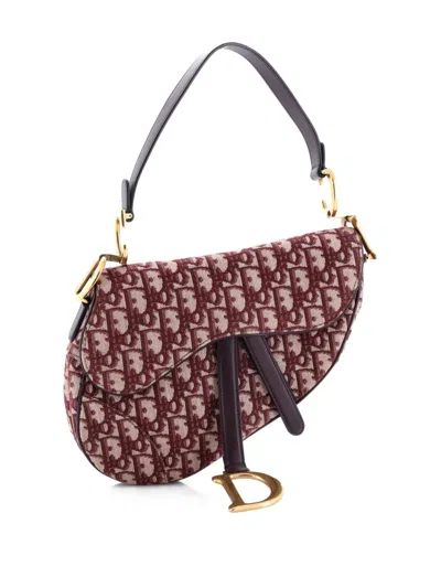 Pre-owned Saddle Handbag Oblique Canvas Medium Shoulder Bag In Red