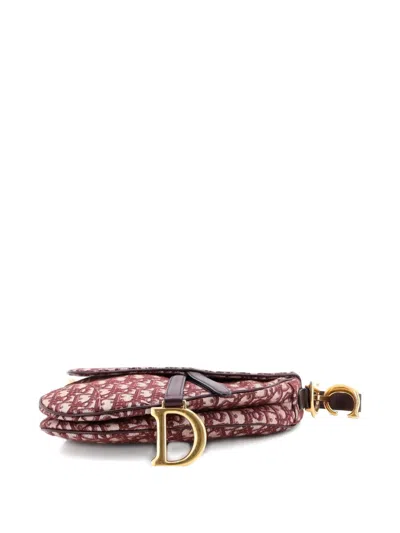 Pre-owned Saddle Handbag Oblique Canvas Medium Shoulder Bag In Red
