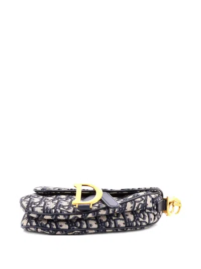 Pre-owned Saddle Handbag Oblique Canvas Mini Shoulder Bag In Blue