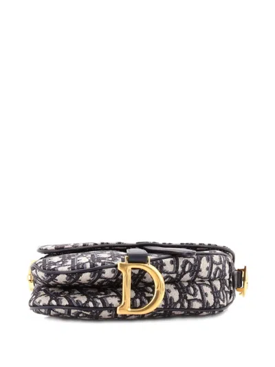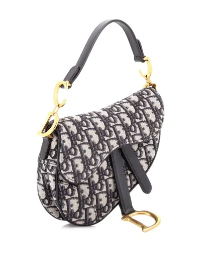 Pre-owned Saddle Handbag Oblique Canvas Mini Shoulder Bag In Blue