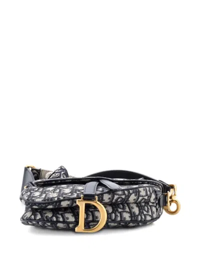 Pre-owned Saddle Handbag Oblique Canvas Mini Shoulder Bag In Blue