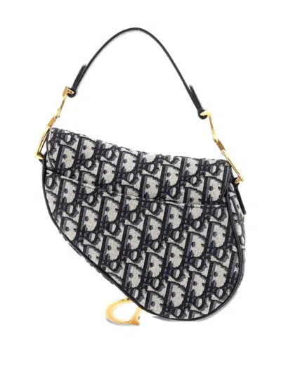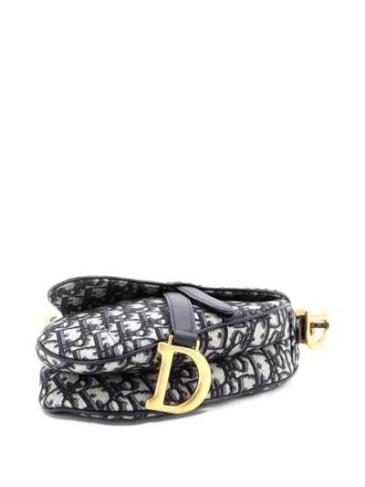 Pre-owned Saddle Handbag Oblique Canvas Mini Shoulder Bag In Blue