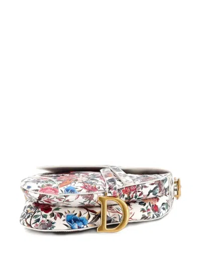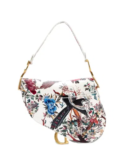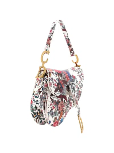 Pre-owned Saddle Handbag With Strap Printed Leather Medium Shoulder Bag In Blue