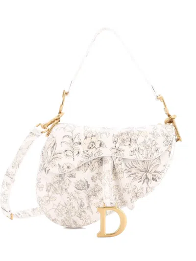 Pre-owned Saddle Handbag With Strap Printed Leather Medium Shoulder Bag In Multi