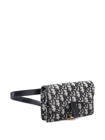 Pre-owned Saddle Rectangular Oblique Canvas Belt Bag In Blue