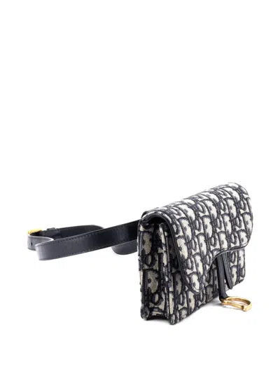 Pre-owned Saddle Rectangular Oblique Canvas Belt Bag In Blue