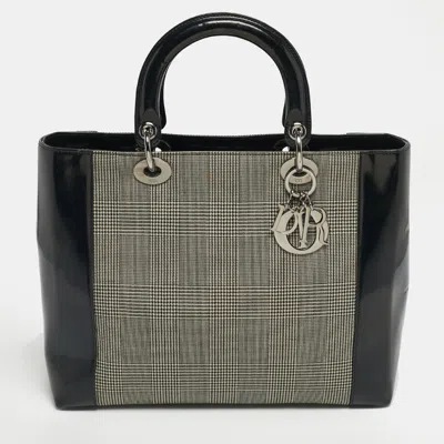 The Lady Dior Tote sits comfortably under your arm the houndstooth pattern giving it an unexpected twist. Black leather edges and handles feel smooth in the hand and the "CD" charm swings lightly as you move. Big enough for a laptop notebook and daily essentials it carries everything without ever feeling bulky.