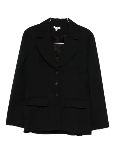 black front button fastening notched lapels front flap pockets long sleeves straight hem