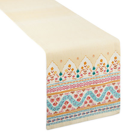 You'll love this richly textured Distant Lands table runner to add a unique touch to your dining area. This runner is made from 100% woven cotton and has a colorful pattern that will effortlessly bring an artisanal vibe. Style it with other dinnerware pieces from the brand's collection. Included: 1 Table Runner(s)Shape: RectangleUse: IndoorMeasurements: 14 Width/Inches, 72 Length/InchesBase Material: 100% CottonFabric Description: WovenCare: Machine WashDecor Styles: BohemianCountry of Origin: Imported