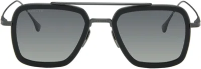 Handcrafted aviator-style titanium- and acetate-frame sunglasses. · Anti-reflective CR-39 gray lenses · Logo etched at lens · 100% UVA/UVB protection · Adjustable titanium nose pads · Double bridge · Includes case · Size: 52.22 144 Supplier color: Black iron/Matte black