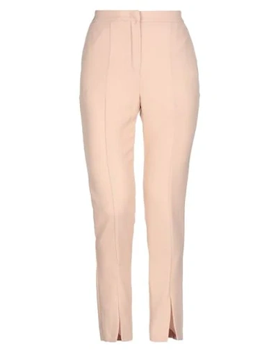 crepe, no appliqués, basic solid color, mid rise, regular fit, tapered leg, hook-and-bar, zip, multipockets, stretch , Color: Blush , Size: M