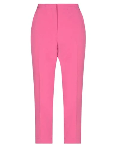 crepe, darts, high waisted, slim fit, tapered leg, hook-and-bar, zip, multipockets, side slit hemline, stretch, solid color , Color: Fuchsia , Size: M