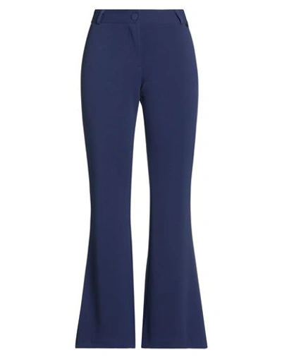 Woman Pants Navy Blue Size M Polyester, Elastane