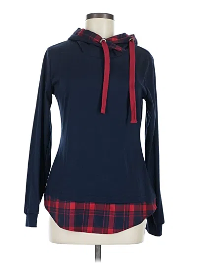 DJT Sweatshirt, Size: Medium. Item Details: Blue, Plaid Pattern, Collared Neckline, Long Sleeve, Flannel, Women's Tops, Polyester/Cotton/Elastane