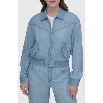DKNY Front Zip Chambray Bomber In Light Chambray