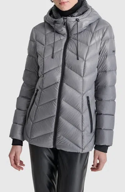 Stay warm in this chevron-quilted nylon jacket constructed with a drawcord-toggle hood, secure zip pockets and lightweight down insulation. Front zip closure Drawcord-toggle hood Front zip pockets Packs into pocket Lined, with 90% duck down, 10% feather fill 100% nylon Machine wash, tumble dry Imported