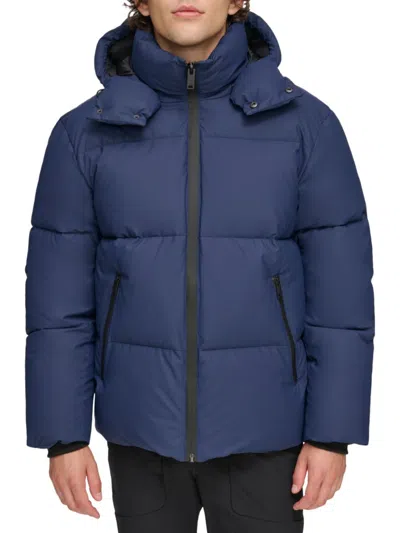 DKNY Rubberized Front Zip Puffer Jacket In Blue