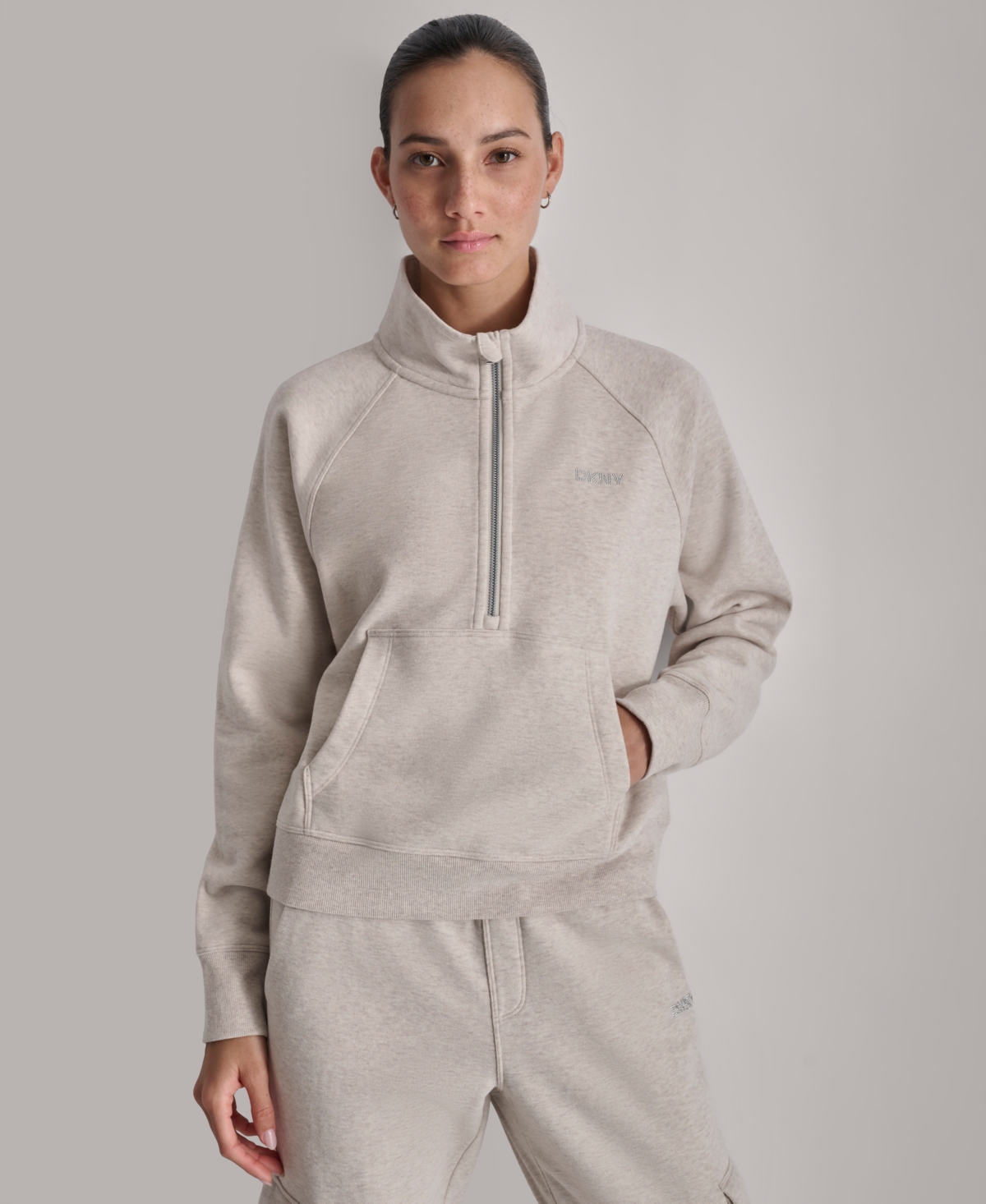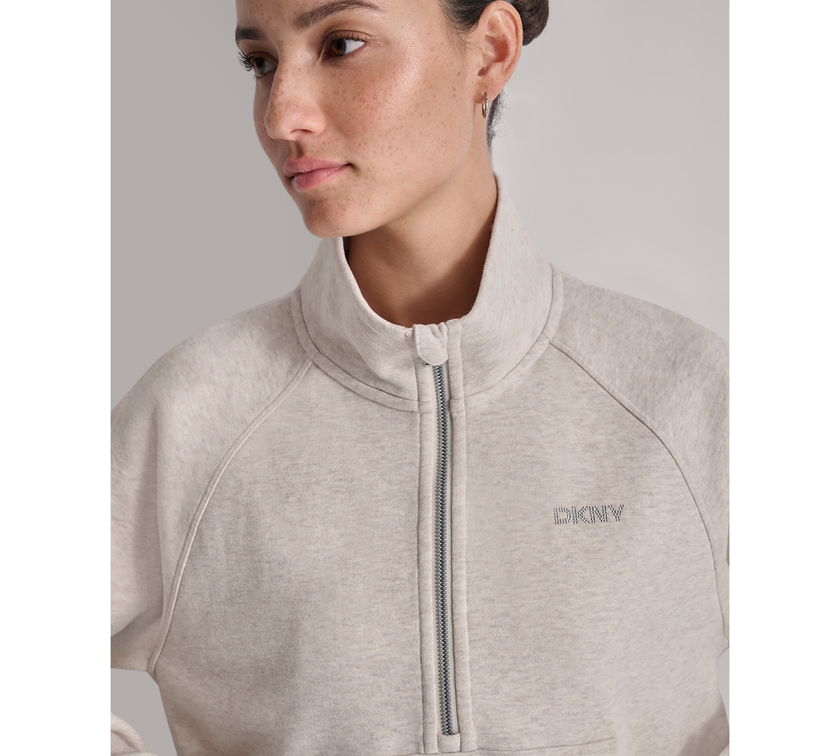 DKNY Sport Women's Studded-logo Half-zip Sweatshirt In Gray
