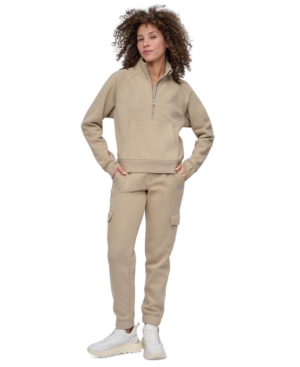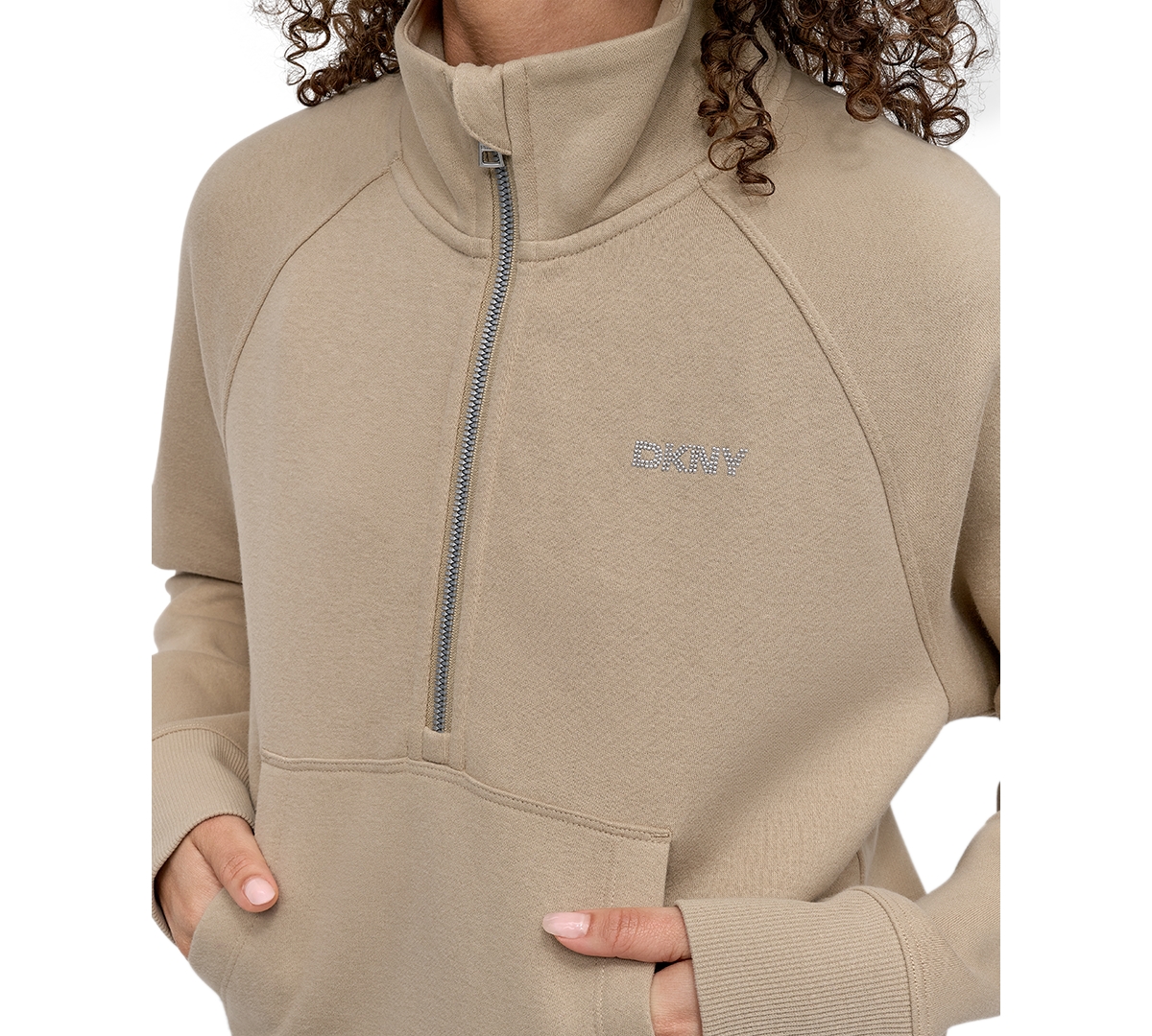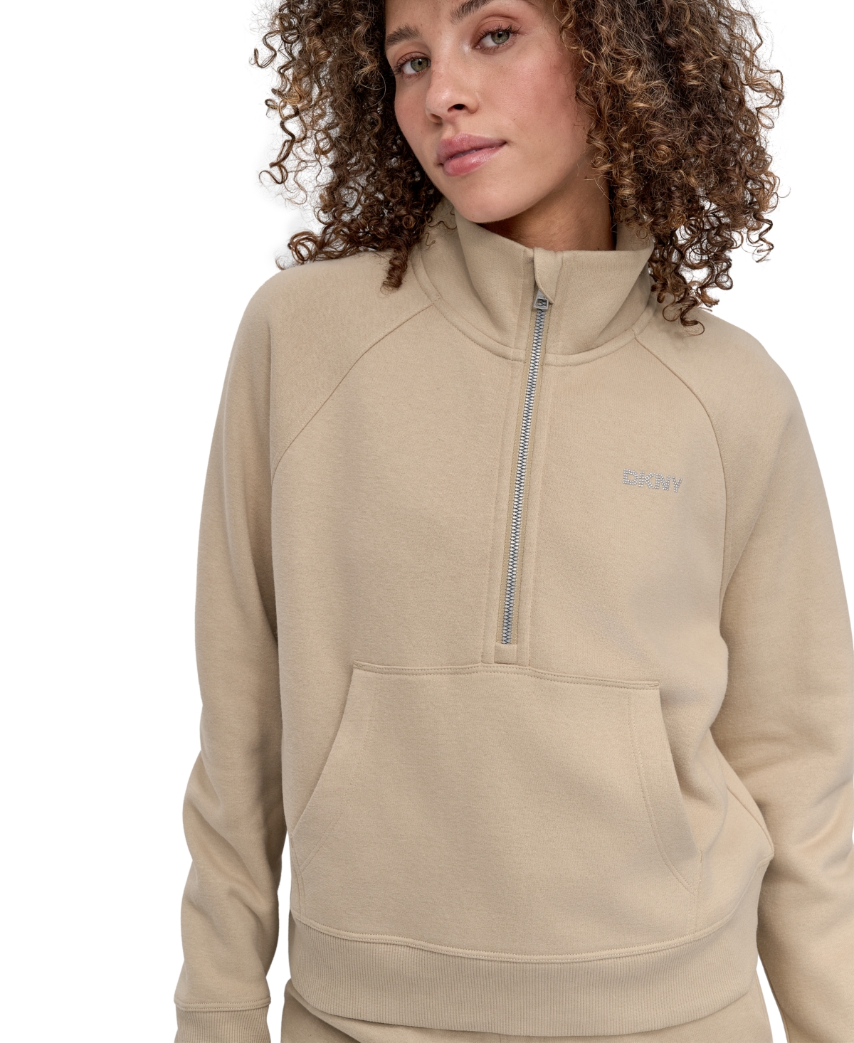 DKNY Sport Women's Studded-logo Half-zip Sweatshirt In Neutral