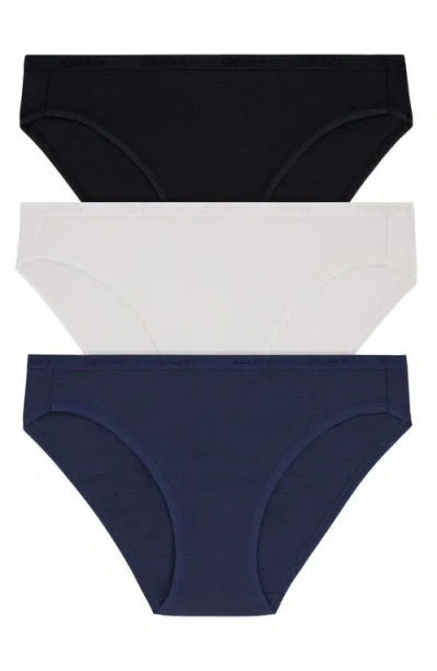 A stretch-softened blend of cotton and modal brings utter comfort to everyday mid-rise bikinis finished with logo lettering encircling the waist. Pack of three pairs Lined gusset 48% cotton, 47% modal, 5% spandex Hand wash, line dry Imported