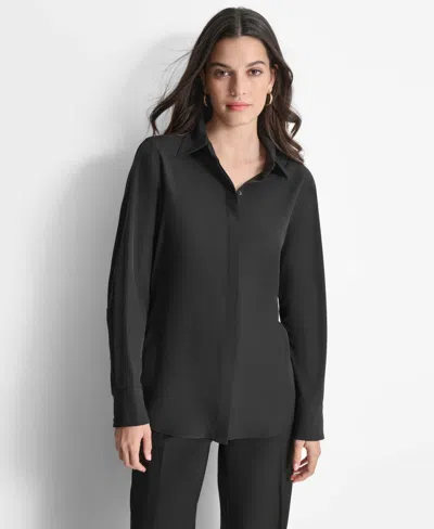 DKNY Womens Collar Polyester Button-down Top In Black