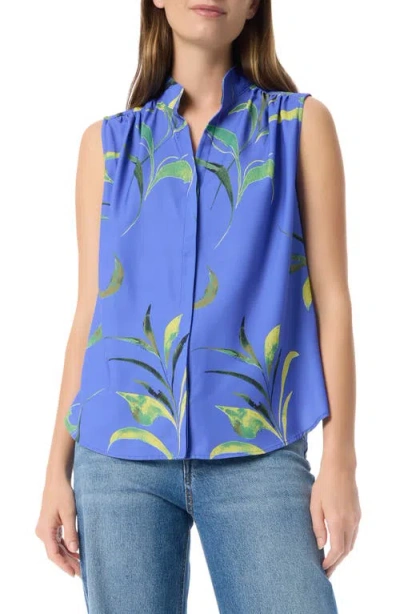 DO BY DEE OCLEPPO Jade Leaf Print Sleeveless Button-up Top In Blue