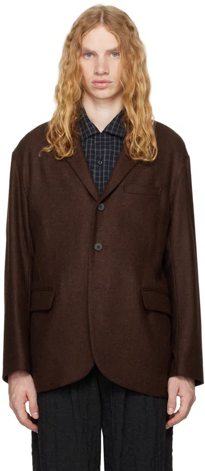 Wool tweed blazer. · Notched lapel · Button closure · Welt pocket and flap pockets · Two-button surgeon's cuffs · Welt pockets at interior · Partial satin lining · Horn hardware Supplier color: Brown