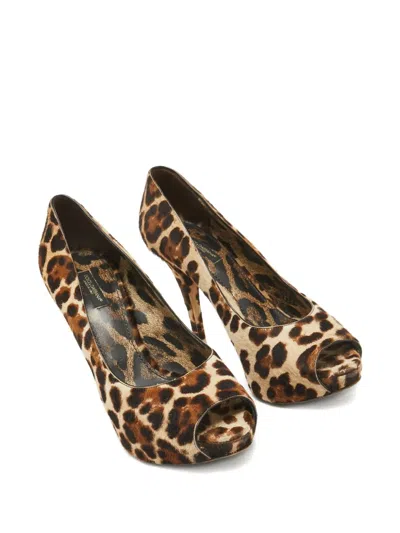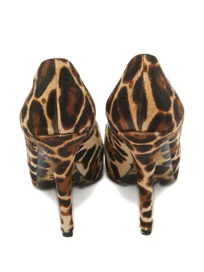 Pre-owned 110mm Leopard-print Peep-toe Pumps In Brown