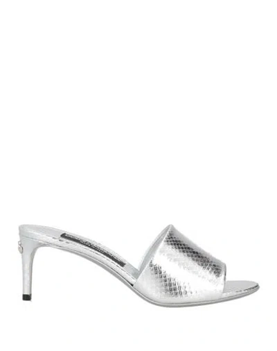 DOLCE & GABBANA 70 Crocodile-effect Leather Mules In Silver