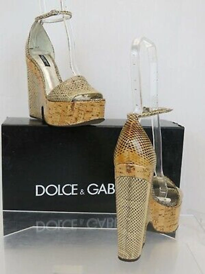 NIB C07524A87131 AYERS + SUGHERO PYTHON LEATHER PLATFORM WEDGES SANDALS By DOLCE & GABBANA 100% AUTHENTIC,GUARANTEED!!! With loads of style and comfort, you'll love wearing these wedges Color: 87649 NUDO / NATURALE ( print on the box) 100% Australian Python leather upper Round open toe Silver tone adjustable buckles Cracked leather wedges platform Leather lined "Dolce & Gabbana" stamped insole 4-1/2" leather wedge heel 1-1/4'' leather front platform Size 36 -print on the shoes and box (approximately can be converted to US 5.5 ) Original price $1795 (print on the box) ATTENTION!!! This shoes made from natural ayers "Australian python" and because of it, their uppers have slightly different pattern and coloring. So, the slight of the shoes is not a defect, but natural for the different parts of wild snake skin. NOTE !!! These shoes came from a famous store in its original box. They are new but they are in-store item and it’s possible that somebody tried them on inside the store. This could cause tiny e