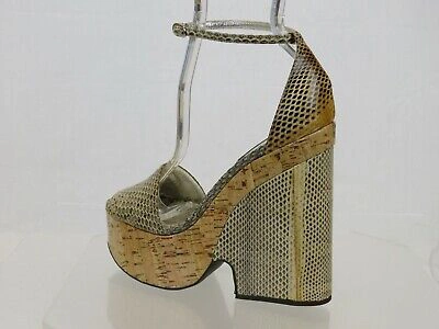 Pre-owned Ayers Sughero Python Leather Platform Wedges Sandals 36 In Beige