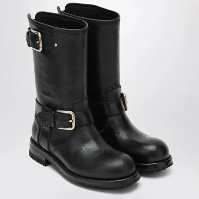 DOLCE & GABBANA Black Leather Boot With Buckles