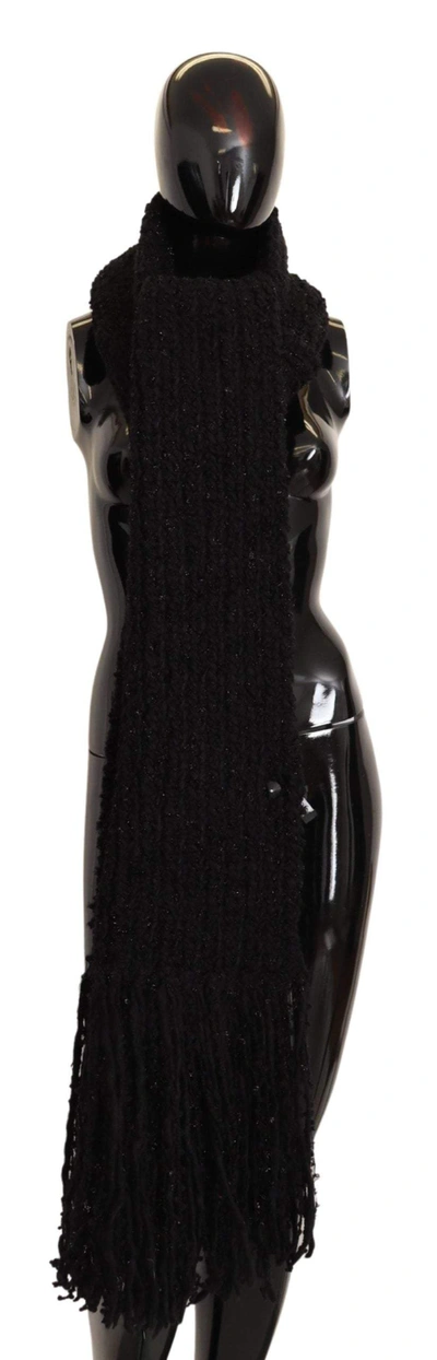 DOLCE & GABBANA Black Virgin Wool Knitted Wrap Shawl Scarf