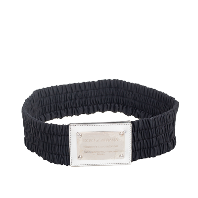 A classic add on to your collection of belts, this Dolce and Gabbana belt has been crafted from patent leather and elasticised fabric in Italy. It has a lovely black shade and a square silver tone buckle with an engraved brand name. This piece carries a classy style, making it a wardrobe essential.