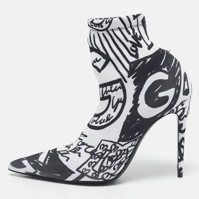 Pre-owned Black/white Knit Fabric Graffiti Sock Boots Size 36