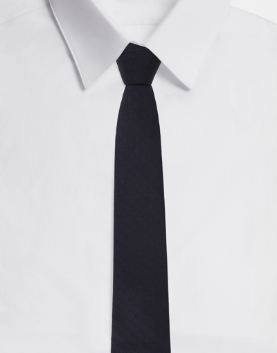 Silk jacquard Sicilia tie with jacquard DG logo: Blue Pointed tip Blade 8 cm Single loop on the back with branded label Lined Made in Italy