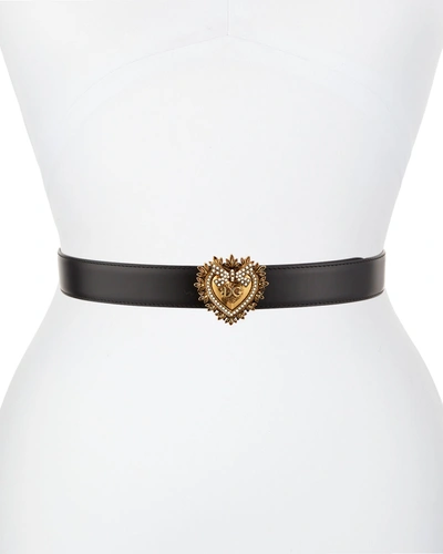 DOLCE & GABBANA Devotion Leather Belt In Black