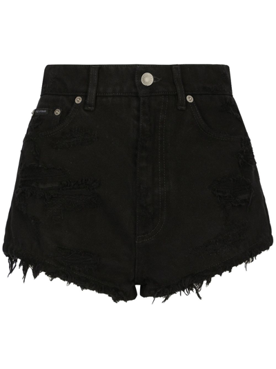 DOLCE & GABBANA Distressed-effect Denim Shorts In Black