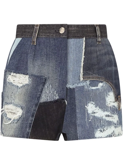 DOLCE & GABBANA Distressed Patchwork Denim Shorts In Variant