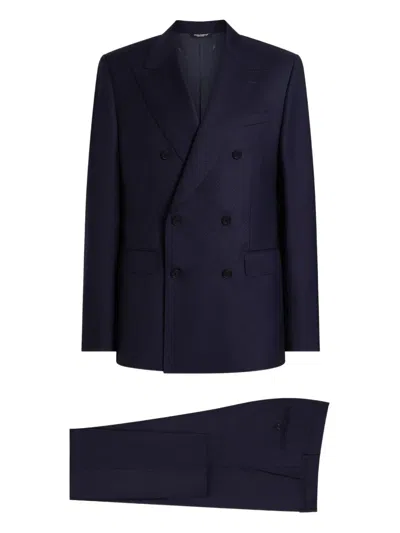 DOLCE & GABBANA Double-breasted Micro-patterned Wool Suit In Blue