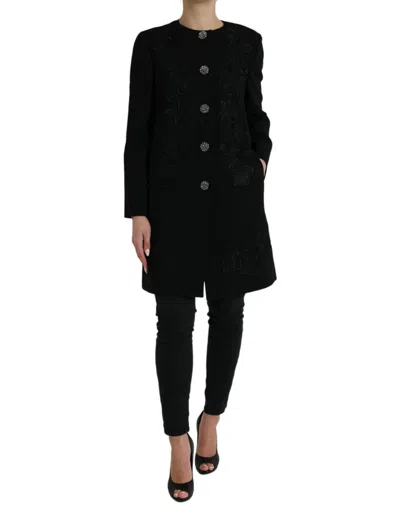 DOLCE & GABBANA Elegant Floral Buttoned Wool Trench Coat In Black